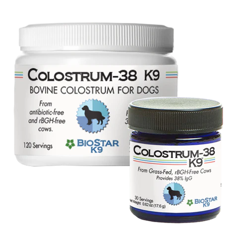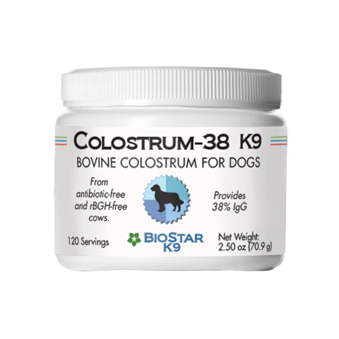 Bio Star’s Colostrum 38 K9 harnesses the natural power of bovine colostrum, providing your dog with a nutritional boost straight from nature. This high-quality colostrum is sourced from rBGH-free cows, delivering essential antibodies, nutrients, and immune factors crucial for your dog’s health and vitality.